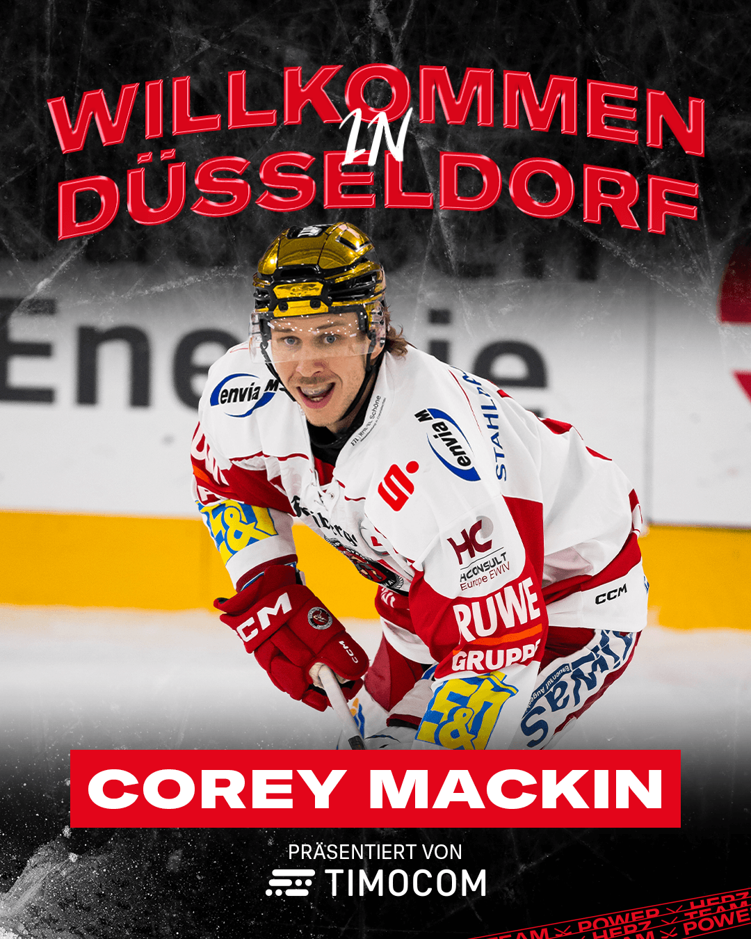 Corey Mackin: „Ich bin glücklich, ab Sommer Teil der Düsseldorfer EG zu sein. Ich hatte mit den Geschäftsführern Andi Niederberger und Rick Amann sowie Rich Chernomaz großartige Gespräche über die Pläne und Ziele der DEG und wie wir gemeinsam den Club weiter voranbringen wollen. Ich freue mich auf diese tolle Herausforderung!“