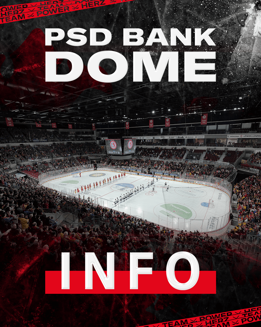 Kleine Neuerung im PSD BANK DOME: Im Bereich der Stehplätze im Mittelrang (Westkurve) werden Vorrichtungen für eine Variobestuhlung eingebaut. Dadurch kann Hallenbetreiber D.LIVE diese Blöcke für 360-Grad-Events schnell und kostengünstig in Sitzplätze umwandeln. Das wiederum kann die Planbarkeit der DEG-Heimspiele erleichtern. Variobestuhlungen sind spezielle Geländer auf jeder zweiten Stufe, aus denen bei Bedarf ein Sitzplatz heruntergeklappt werden kann. Anders als bisher sind die Geländer jetzt durchgehend – dadurch erreicht man manche Stehplätze über andere Zugänge als zuvor. Bei DEG-Heimspielen sind die Sitze hochgeklappt und verriegelt, so dass kein Platzverlust entsteht.